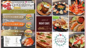 海の家APOAの軽食やおつまみ、ドリンクやアルコールのメニューはこちら(外部リンク)